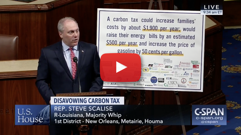 House Majority Whip Steve Scalise (R-La.) and Rep. David McKinley (R-W.Va.) led H.Con.Res 119, expressing the sense of Congress that a carbon tax would be detrimental to the United States economy, to strong passage in the House today with a vote of 229-180. Thanks to pro-growth Republican reforms, American families are seeing increased opportunity and the U.S. has entered a new era of energy dominance. A carbon tax as proposed by some special interest groups would undo the economic benefits we've seen, impose a costly, job-killing burden on all Americans, and stunt U.S. energy growth and success.