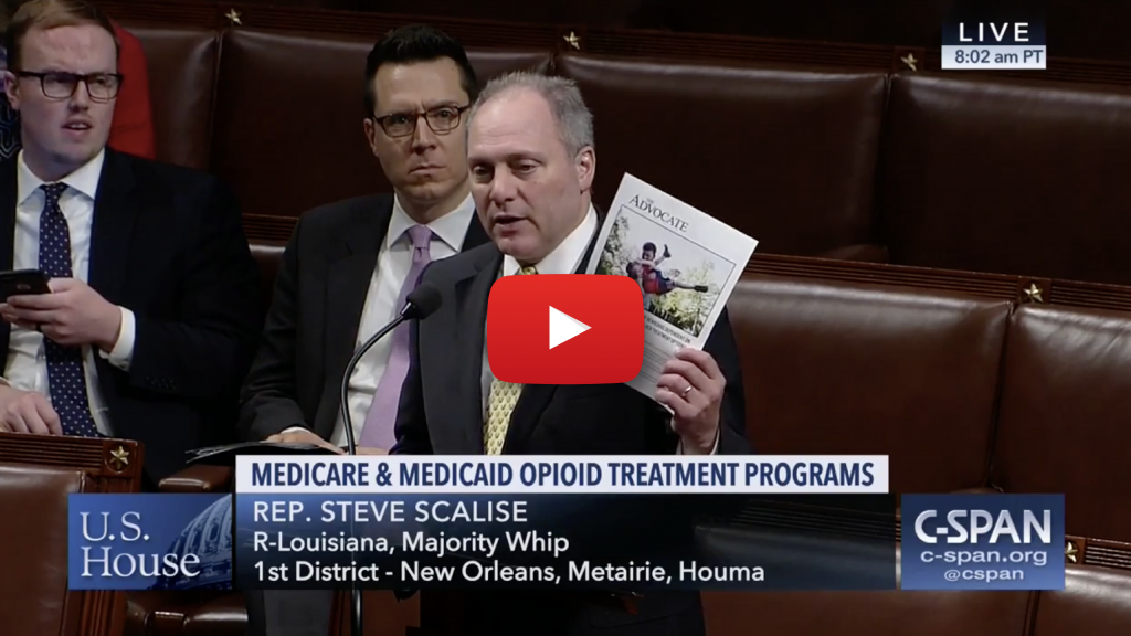 House Takes Action to Combat the Opioid CrisisHouse Majority Whip Steve Scalise (R-La.) spoke on the House floor earlier today in support of H.R. 6, SUPPORT for Patients and Communities Act, the final bill in Congress's two week, bipartisan effort to pass legislation to combat the opioid crisis. Whip Scalise highlighted a Slidell, Louisiana family whose son was born addicted to opioids, a syndrome called NAS, as a result of his mother's battle with addiction. Scalise rose in support of an amendment to H.R. 6 that will require a report on opioid prescribing practices and misuse during pregnancy and non-opioid pain management alternatives for pregnant mothers in an effort to prevent further NAS cases. In a coordinated effort between House committees, including the Energy and Commerce Committee, which Whip Scalise serves on, the House passed this and dozens of other bills that together take a comprehensive approach to solving this epidemic. Click here or on the image below to watch Whip Scalise's remarks.