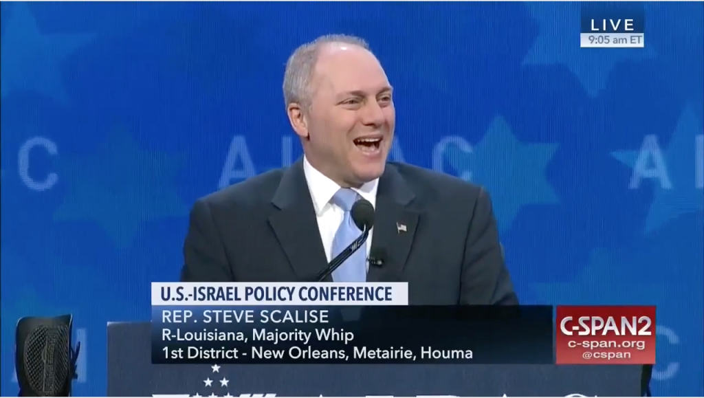 “It truly is an honor to be here with you and I want to welcome you to Washington, from all over the country. I know in just a few hours, thousands of you will be making your way to the Hill to go on tour and meet with hundreds of Members of Congress. From our Members of Congress, from our Senators, I know I look forward to the meetings I’m going to be having later today with my friends from Louisiana and it's so important, this work that you're doing. Not only are you exercising your Constitutional right, but you're also ensuring that the U.S.-Israel relationship remains a strong and bipartisan priority in Congress. it's always been that way.