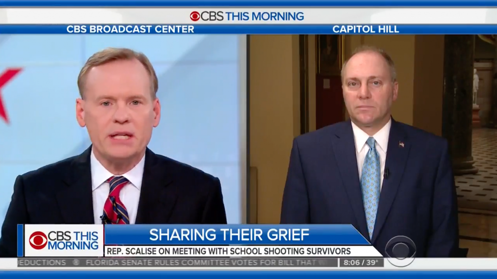 Scalise Discusses Visit with Stoneman Douglas Students, Enforcement FailuresHouse Majority Whip Steve Scalise (R-La.) joined CBS This Morning today to discuss his meeting with students from Majory Stoneman Douglas High School and the advice he shared with them on healing from this tragedy. He also expressed his concerns with failures in the existing system designed to prevent these events and encouraged the Senate to pass the Fix NICS Act and Concealed Carry Reciprocity Act as the House passed last year to address these concerns.