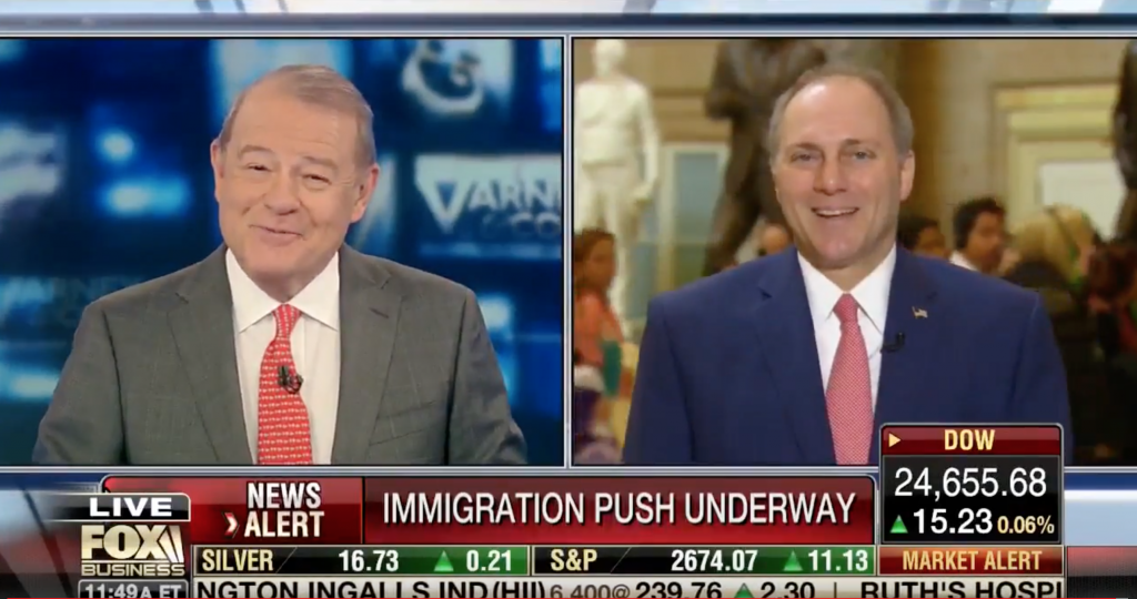 Scalise on Fox Business: I Want to See the Goodlatte-McCaul Bill PassedHouse Majority Whip Steve Scalise (R-La.) joined Fox Business Network's Varney & Co. earlier today to discuss the economic success our country has seen in the last two months because of the Tax Cuts and Jobs Act, as well as his efforts to whip support for the Goodlatte-McCaul immigration bill in the House.