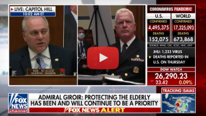 Click here or on the image above to view the clip. Transcript: Whip Scalise: Now, Dr. Redfield, I want to talk to you about reopening schools. I know you've been very involved in this. The CDC has put out multiple documents of guidance for safely reopening schools. Here: checklists for parents, checklists for teachers, guidance for K-12 school administrators on the use of cloth face masks in schools. I know some people want to make that controversial, this is President Trump's plan, part of his plan, to safely reopening schools. It talks about the use of masks. Here you've got school decision making tool for parents, caregivers, and guardians. Are these all parts of the President's plan to safely reopen schools? Dr. Redfield: Yes. Whip Scalise: Have you been involved in developing that with President Trump? Dr. Redfield: Yes. Whip Scalise: Do you think that schools should safely reopen this fall with in-person learning? Dr. Redfield: Yes, I think it's important to realize that it's in the public health best interest of K-12 students to get back in face-to-face learning. There's really very significant public health consequences of the school closure. Whip Scalise: For example, they lack the ability to detect child abuse that occurs and is detected often in schools. Do you know how much child abuse will not be detected if children aren't returning to the school? Dr. Redfield: Clearly, we're seeing less reporting of it and again, I think it's a direct consequence of the school closures. 7.1 million kids get their mental health services at schools, they get nutritional support as we mentioned from schools. We're seeing an increase in drug use disorder as well as suicide in the adolescent individuals. So, I do think it's really important to realize it's not public health versus the economy about school opening, its public health versus public health of the K-12 [students] to get these schools open. We’ve got to do it safely and we've got to be able to accommodate. Whip Scalise: Well, I appreciate that, and I know we're out of time. I hope that these school systems follow President Trump and these great medical doctors’ guidance and help those kids by safely reopening. Scalise Questions Admiral Giroir