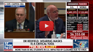 Click here or on the image above to view the clip. Transcript: Whip Scalise: Dr. Fauci, let me ask you about some of the decisions that you worked with President Trump on, and the whole team did. I know when you go back to the beginning of this, the China ban was very heavily discussed. Were you involved in working with President Trump on deciding to ban flights from China? Dr. Fauci: Yes, sir. I was. Whip Scalise: Do you agree with that decision? Dr. Fauci: I do. Whip Scalise: Do you think that decision saved lives, Dr. Fauci? Dr. Fauci: Yes, I do. Whip Scalise: Do you agree with the decision when ultimately, we saw [COVID-19] spreading in Europe, and the President recommended that we extend [the travel ban] to Europe. Did you participate in that discussion? Dr. Fauci: I was actively involved in that discussion, sir. Whip Scalise: Do you agree with that decision? Dr. Fauci: Yes, I do. Whip Scalise: Do you think that decision saved lives? Dr. Fauci: Yes, I do. Whip Scalise: Eventually, then we saw the United Kingdom have an outbreak and there had to be a tough decision made. Did we extend that to the United Kingdom? Were you a part of that decision? Dr. Fauci: I was. Whip Scalise: And do you agree with that decision as well? Dr. Fauci: I do. Whip Scalise: Did that decisions save lives? Dr. Fauci: Yes, it did. Whip Scalise: When you look at the ’15 Days to Slow the Spread.’ Initially it started at 15. Were you part of the decision to implement that decision? Dr. Fauci: I was very much involved in that. Whip Scalise: Did that decision save lives, Dr. Fauci? Dr. Fauci: I believe it did. Whip Scalise: Then when President Trump met with you and Dr. Birx to extend that another 30 days, do you agree with that decision President Trump made to extend that? Dr. Fauci: Yes, I was very much involved, and I agree with it. Whip Scalise: Did that decision save lives, Dr. Fauci? Dr. Fauci: I believe it did. Whip Scalise: So, I know we’ve heard a lot about disagreements. Clearly there are many decisions made. In fact, there are many very internationally respected doctors that are involved in each of those decisions. Is that correct? Dr. Fauci: Yes. Whip Scalise: By and large, would you say that you and President Trump have been in agreement on most of those decisions? Dr. Fauci: We’re in agreement on virtually all of those. Scalise Questions Dr. Redfield